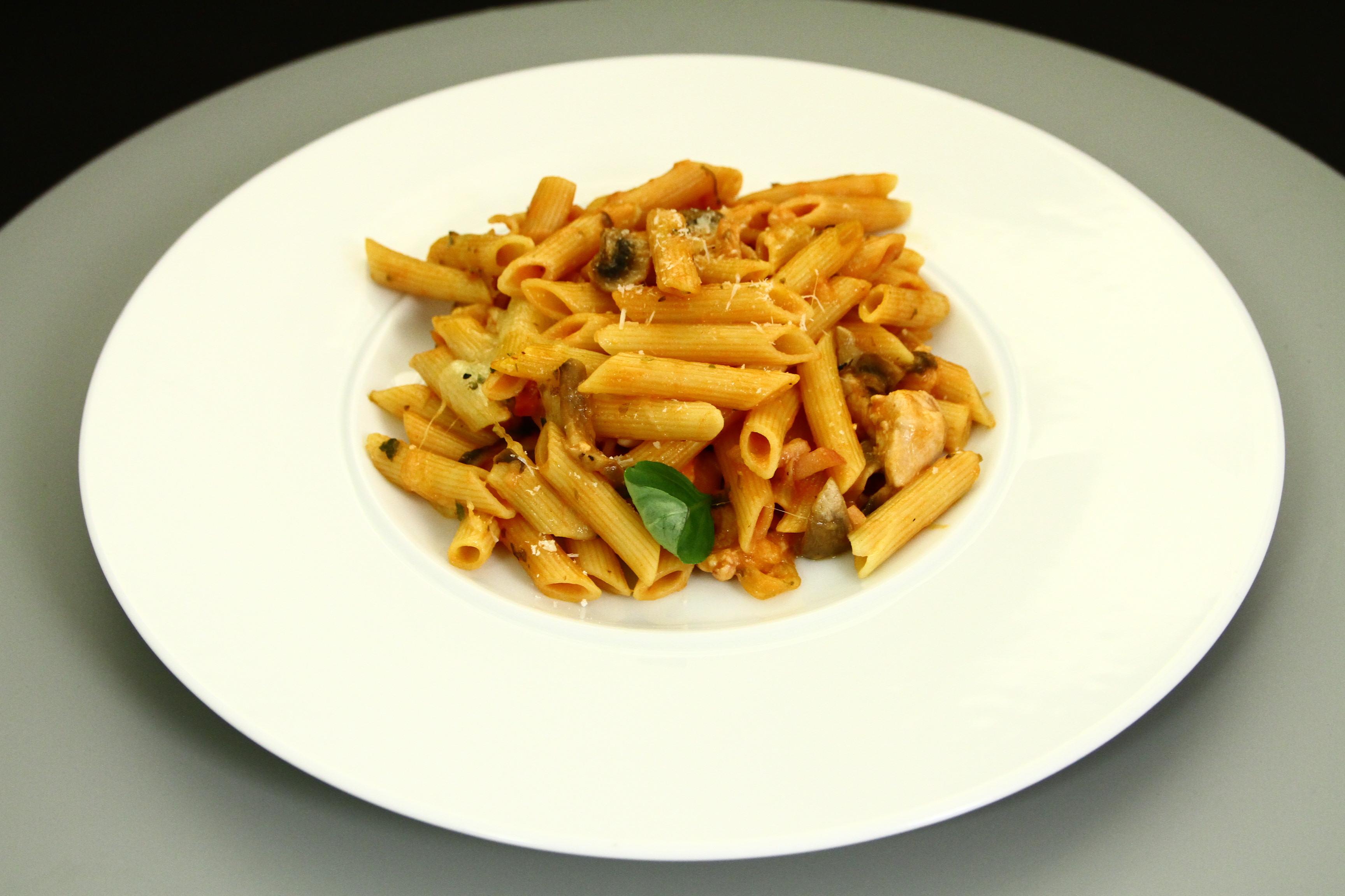 Penne Siciliene Al Forno Cu Pui Ciuperci Si Sos Rose Gurmandino Ro